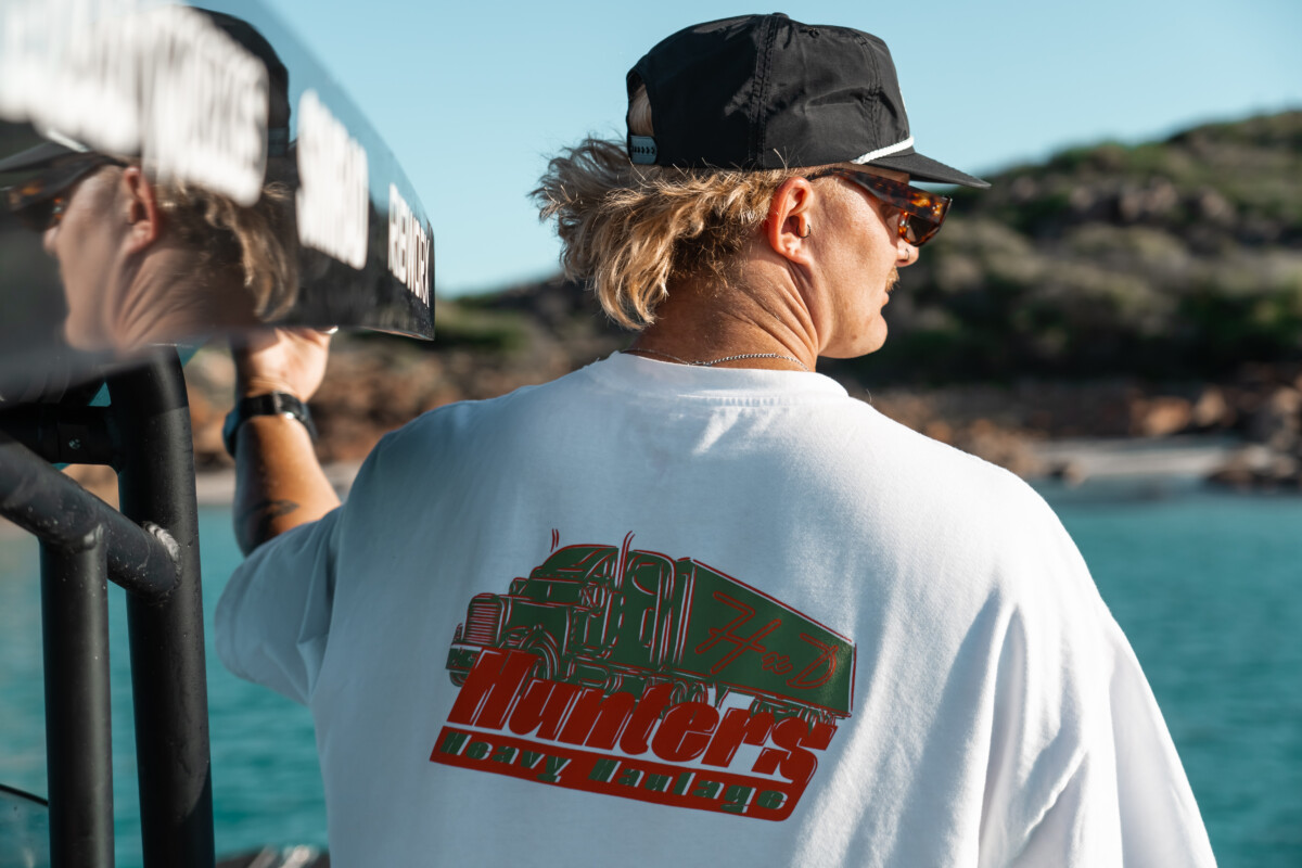 Our Hunters Heavy Haulage Heavy Tee is built to last with heavy weight 300 GSM 100% cotton. A boxy oversized fit with dropped shoulders, wide neck ribbing, side seams, shoulder to shoulder tape, and double needle hems ensure durability and comfort. The Wild Wanderer design is hand drawn and created by Britta.