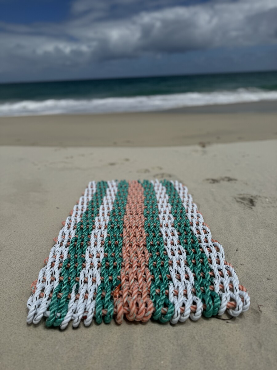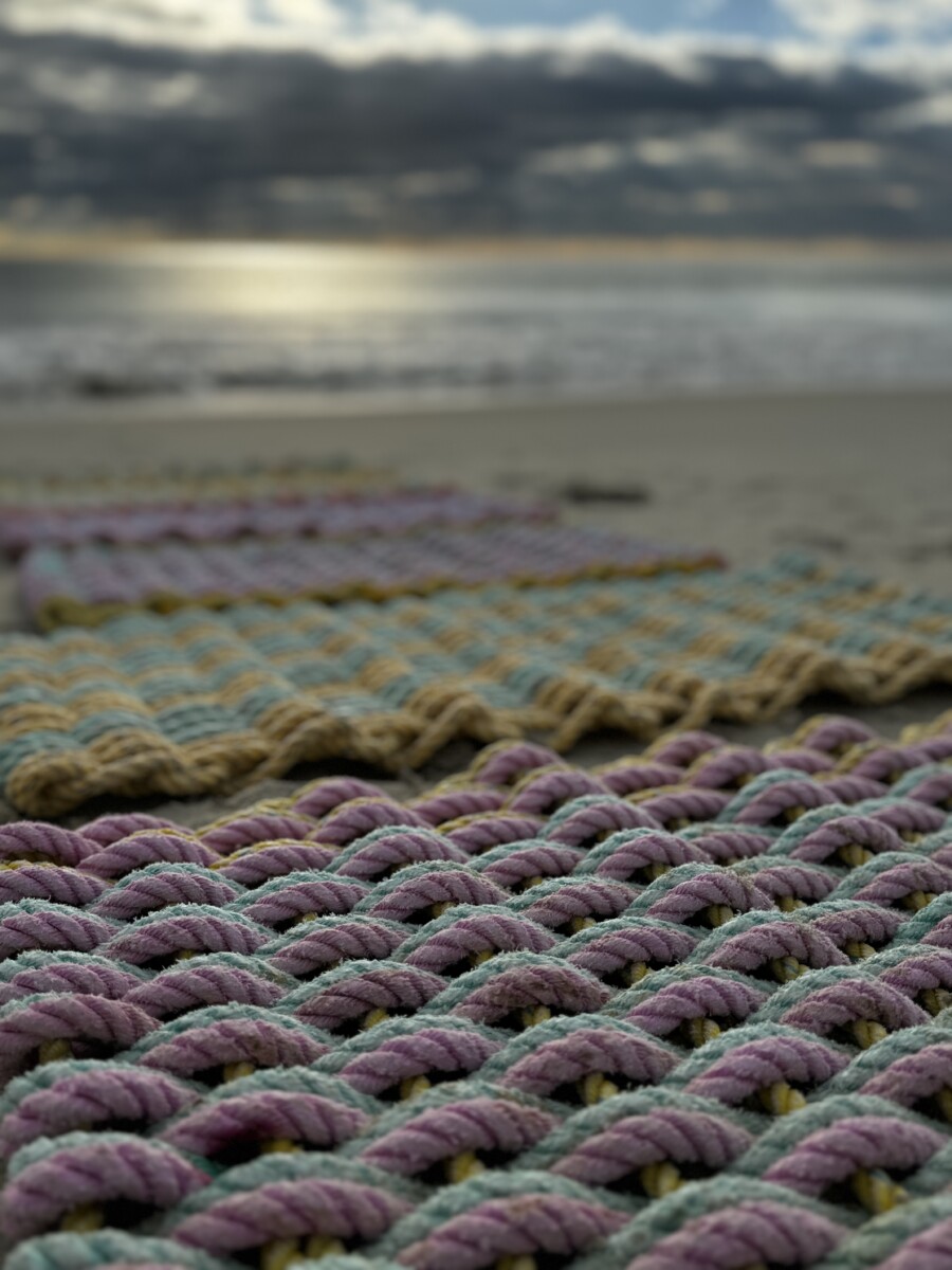 100% recycled cray rope put to good use to prevent it ending up in landfill and hand weaved into these groovy multipurpose mats by Britta herself!