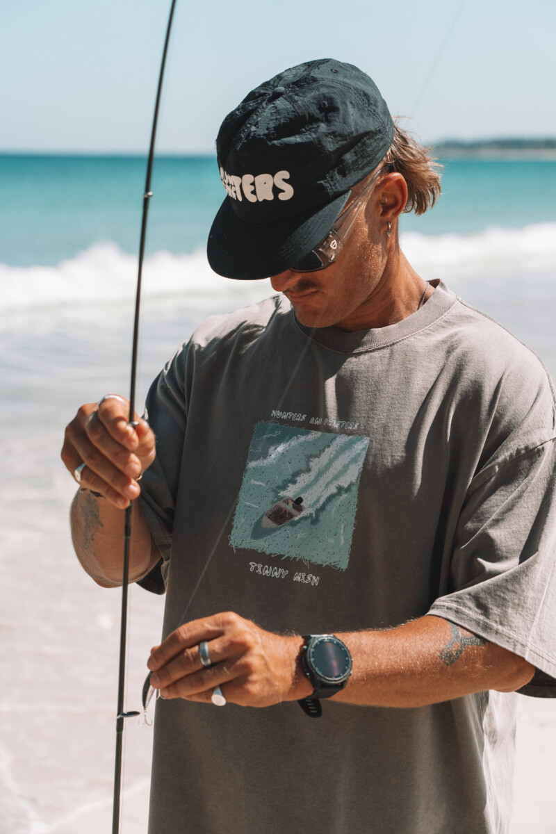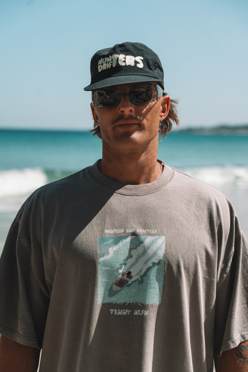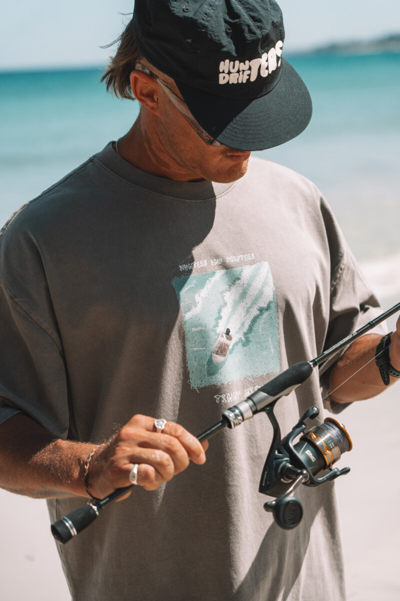 Our Hunters Tinny Fish is built to last with heavy weight 240 GSM 100% cotton. A boxy oversized fit with dropped shoulders, wide neck ribbing, side seams, shoulder to shoulder tape, and double needle hems ensure durability and comfort. The Tinny Mish design is hand drawn and created by Britta.