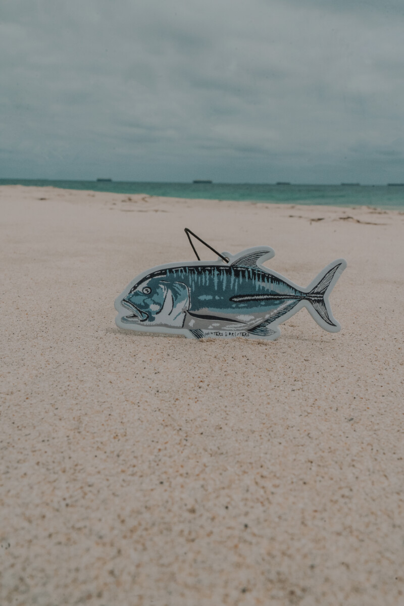 This air freshener represents the silver shimmer of a Trevally and smells like an island adventure bursting with a creamy coconut scent.